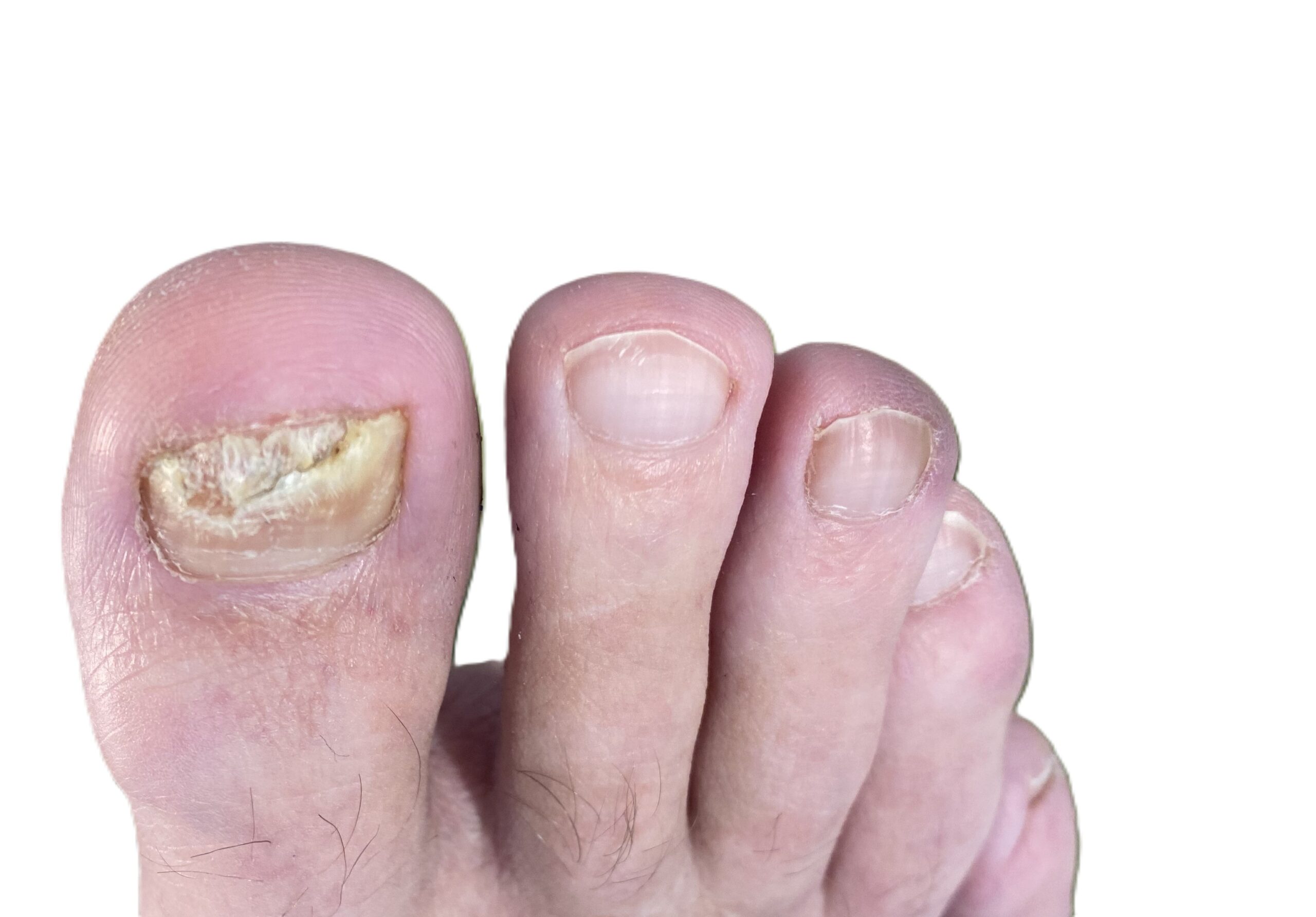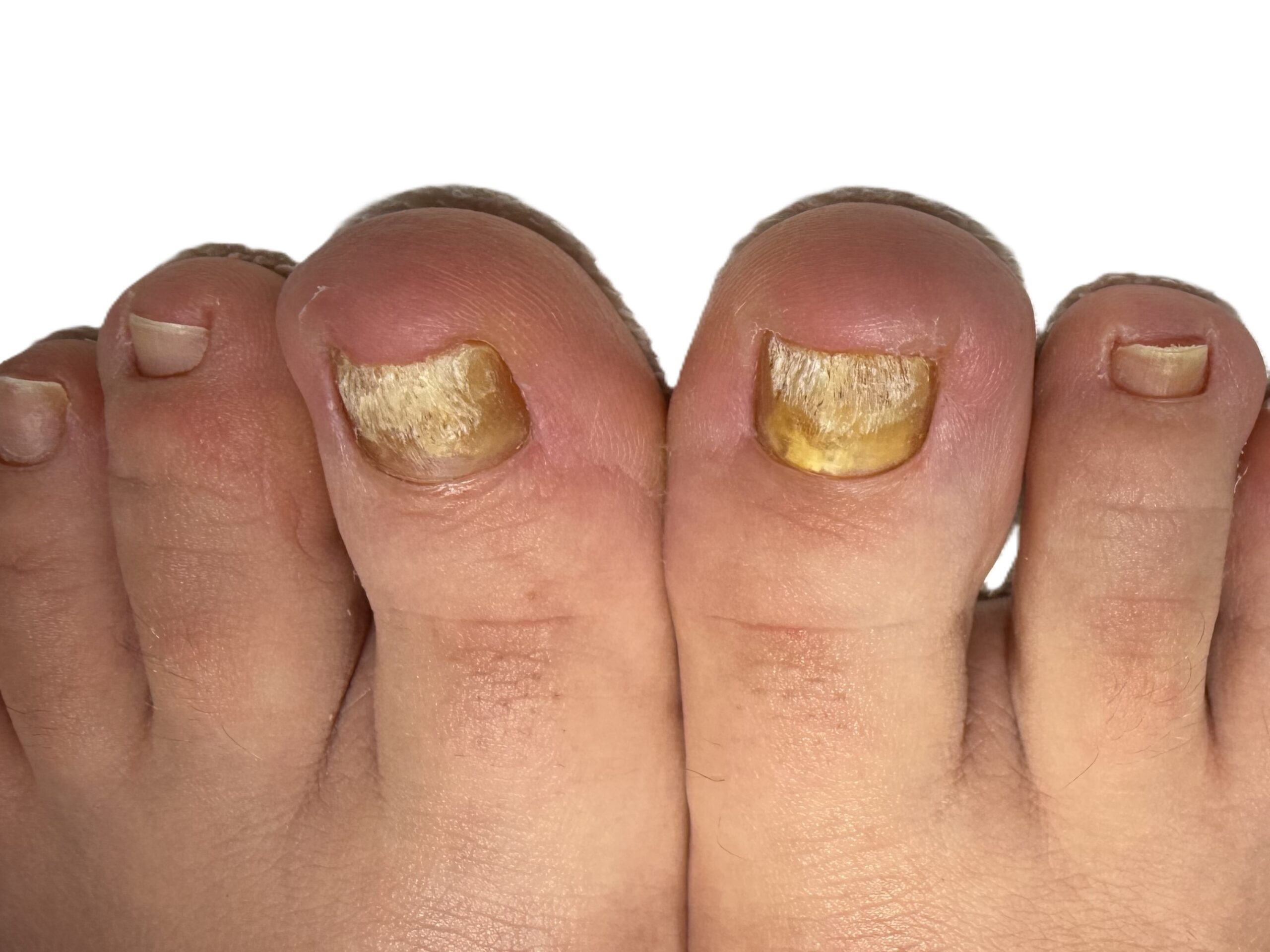 Die Pilzerkrankung beginnt vorwiegend an der Großzehe. Der Nagel ist gelb, machnmal dick, oder brüchig , kann auch unangenehm riechen. Typischerweise sind nicht alle Nägel gleichzeitig vom Pilz befallen.